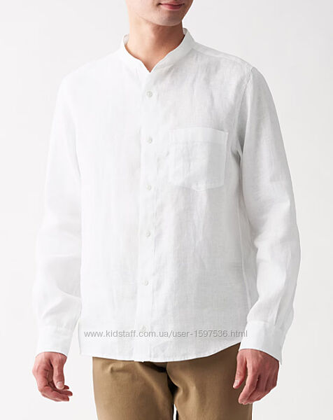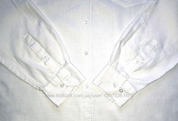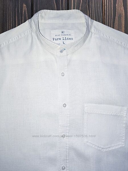 Мужская рубашка из льна известного английского бренда Marks & Spencer®Blue Harbour. Размер указан L, большемерит на XL наш 52 размер (замеры см. ниже). Очень красивая, качественная, эксклюзивная. Модель Regular Fit с воротником Mandarin ( воротник стойка). Цвет белоснежный. Низ слегка полукруглый. Рукав трансформер (закатывается и крепится хлястиком с пуговкой). Рубашка имеет эргономичный крой и может носиться как на выпуск, так и в заправленном состоянии. Материал Pure Linen – 100% – чистый лен высочайшего качества. Отличный вариант на жару для повседневной носки. Состояние – новой, без бирки, сток. Производство Бангладеш. Цена на официальном сайте – от 40 фунтов. Отвечу на ваши вопросы. Замеры: ширина в плечах -52,5см. ширина по спине (от подмышки до подмышки)- 64 см. ширина по талии 63см, ширина по низу 64см, длина рукава от плечевого шва по наружной стороне - 68 см длина рукава по внутр. – 56см. Общая длина рубашки –80 см. Ворот 43-44см