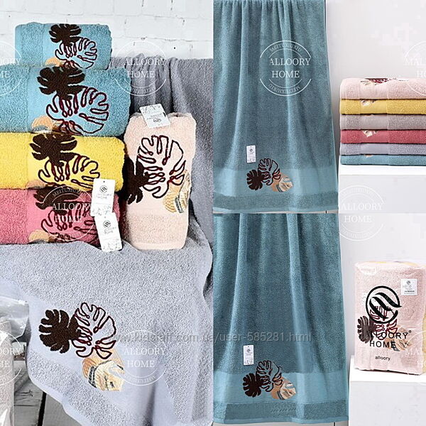 набір красивих махрових рушників з розкішною вишивкою, однотонні, мякі, в наборі 1 рушник для обличчя розміром 50-100 см і 1 рушник для душу розміром 70-140 см, 100% бавовна, кольорова гама в пастельних тонах підійде під будь-який інтерєр Вашої ванни.
