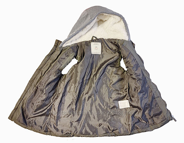 Стеганная мягкая жилетка с цельнокроеным утепленным капюшоном, небольшими карманами и молнией с защитой подбородка.Приглушенный сдержанный оливковый оттенок ткани жилетки, трикотажный серо-голубоватый капюшон на белой подкладке из искусственного меха.