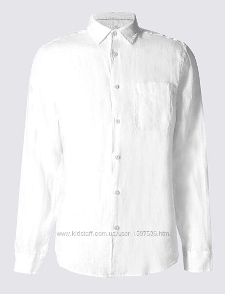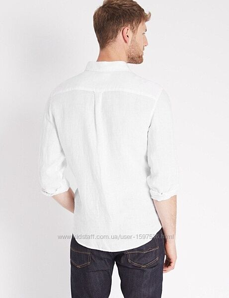 Мужская рубашка из льна известного английского бренда Marks & Spencer® Collection. Размер указан XL, но может пройти на XXL наш 52-54 размер (замеры см. ниже). Очень красивая, качественная, эксклюзивная . Модель Regular Fit с воротником Kent. Цвет указан White- белоснежный. Низ слегка полукруглый. На груди карман с левой стороны. Материал 100% - чистый лен высочайшего качества. Рубашка имеет эргономичный крой и может носиться как навыпуск, так и в заправленном состоянии. Отличный вариант на жару для повседневной носки. Состояние- новая, без бирки, Сток. Производство Бангладеш. Цена на официальном сайте от 35 фунтов. Отвечу на Ваши вопросы. Замеры: ширина в плечах -50см. ширина по спине (от подмышки до подмышки )- 65 см. ширина по талии 65см, ширина по низу 66см, длина рукава по внешнему шву- 66 см. длина рукава по внутр.шву- 52 см. общая длина рубашки –77 см. ворот 43-44см.