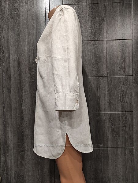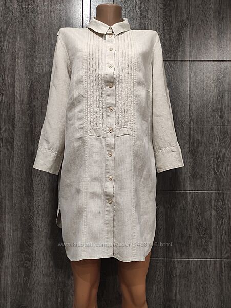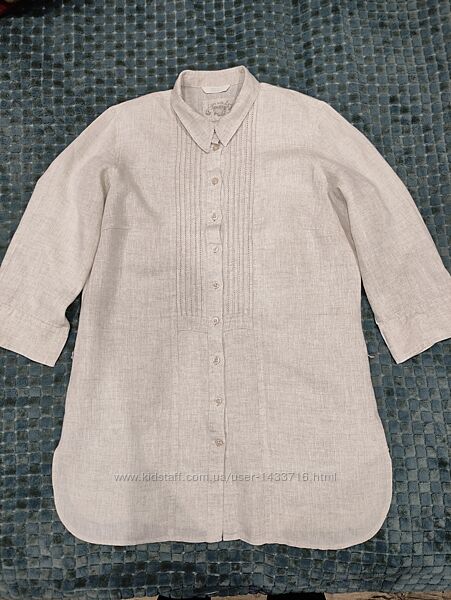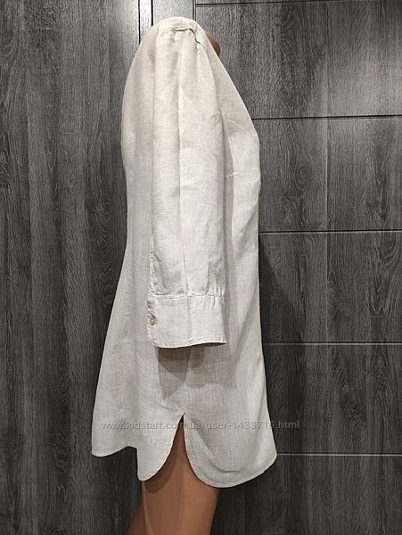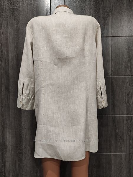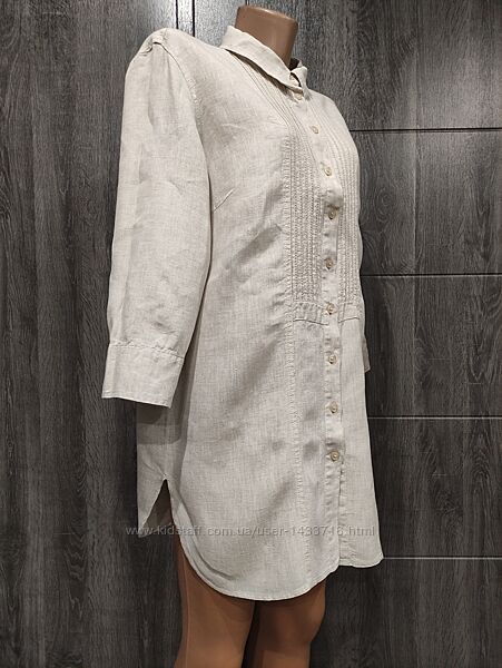 Превосходная удлинённая рубашка туника из небеленого льна. Фирма Marks&Spencer, сделана в Шри-Ланке, состав: 100 % лён. Состояние новой вещи! Дефектов никаких нет. Смотрится шикарно.Размер указан 14, наш ориентировочно 50. Смотрите внимательно замеры: