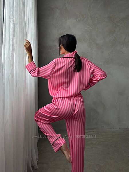 Інший одяг для дому та сну нашого магазину, Ви можете переглянути тут: https://www.kidstaff.com.ua/user-anno-1997582/sect...Розкішна жіноча піжама з якісного шовковистого сатину, яка подарує вам комфорт і стиль навіть удома. Комплект складається з вільної сорочки на ґудзиках із довгим рукавом і штанів на резинці.