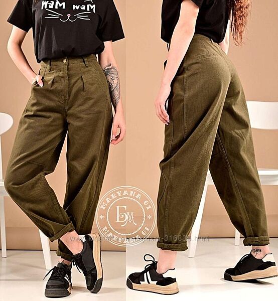 Подробное описание: Базові джинси слоучі / мом / балони / хакі