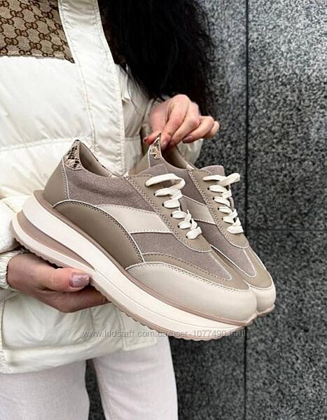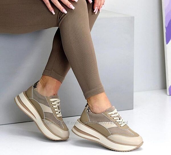 Подробное описание: Кросівки натуральна шкіра, бежеві , на платформі, кроссовки кожа беж