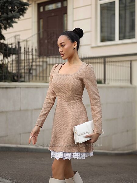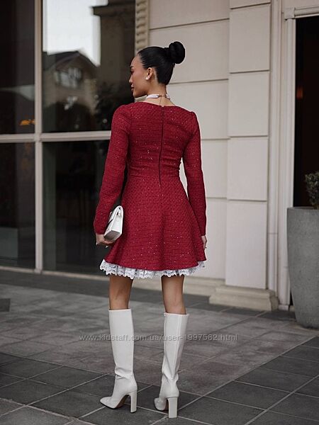 Подробное описание: Вечірня сукня твідова з мереживом класична елегантна міні з довгим рукавом