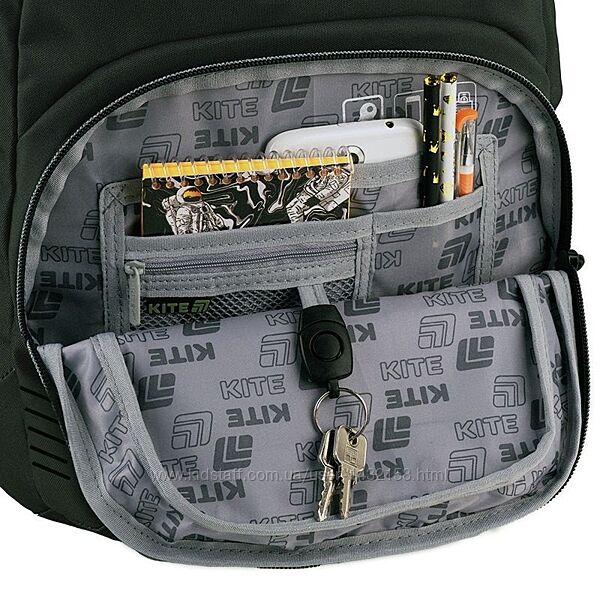 велика передня кишеня, всередині якої – органайзер для канцелярії, кишенька для дрібниць і знімна ключниця;