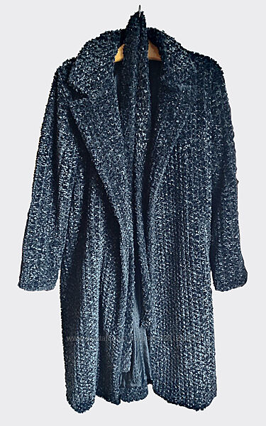 Женственное, уютное, невероятно приятное на ощупь, с интересной меховой фактурой – это пальто не только согреет, но и придаст образу утонченный шарм.Сдержанная цветовая гамма делает его универсальным, а игра оттенков добавляет выразительности: угольно-графитовый (почти черный) основной тон эффектно оттеняется серебристо-серой «звездной пылью» на кончиках ворса (из-за особенностей освещения на фотографиях не удалось полностью передать весь эффект фактуры, но в реальности оно максимально схоже с фото 6-7).