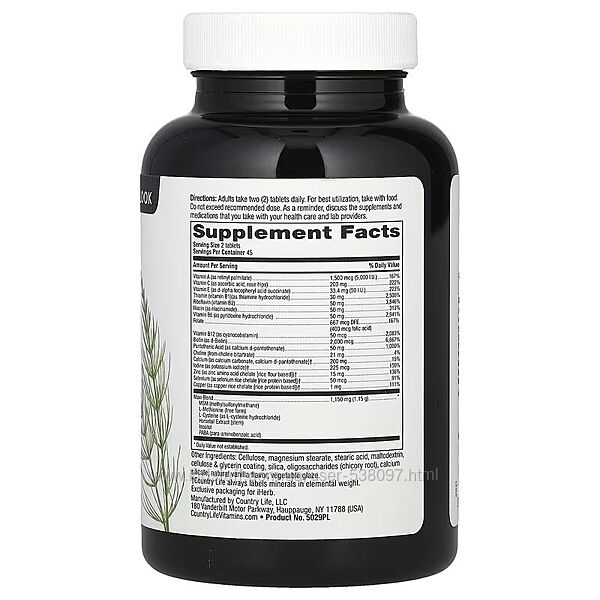 Важным компонентом волос является аминокислота L-цистеин. Она также входит в состав комплекса от Country Life. Это вещество улучшает состояние волос, эластичность и текстуру кожи, предохраняет от старения.