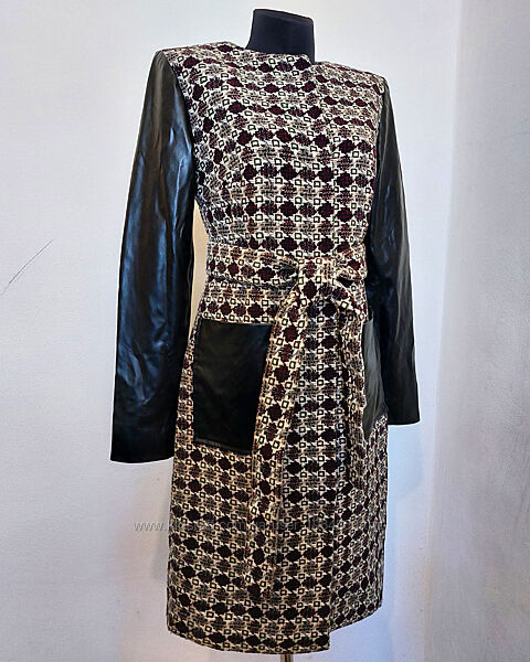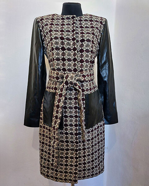 РОЗПРОДАЖ◼️ Стильне комбіноване пальто, букле та еко шкіра