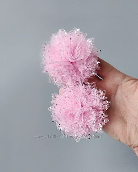Бантики з фатину, зі зручним кріпленням на вибір: заколочка або резиночка.