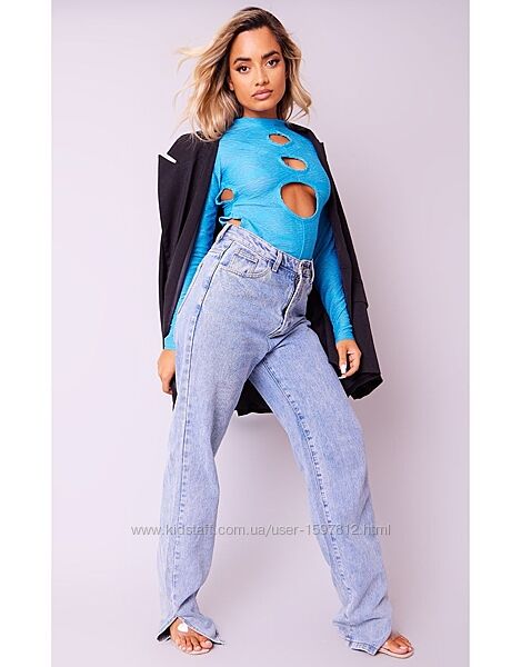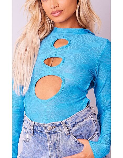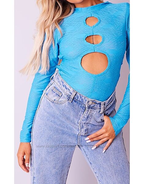 Подробное описание: Боді-лонгслів блакитний текстурний з вирізами S PrettyLittleThing 1689236