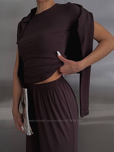 Подробное описание: 42-46 костюм трійка футболка, лонг, палаццо натуральна віскоза