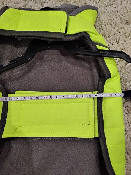 Довжина від коміра - 26 см, ширина 22, можна трошки більше, бо там ліпучка, до 26