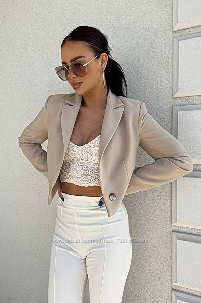 Подробное описание: Укорочений жіночий піджак вкорочений жакет на весну літній білий чорнй беж