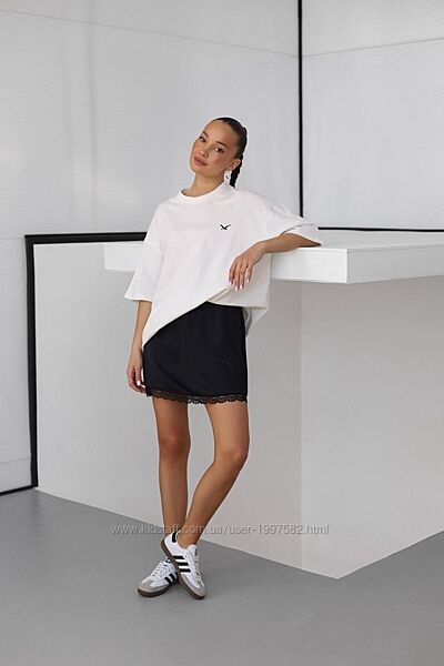 Подробное описание: Спідниця сатинова з мереживом міні літня коротка чорна біла