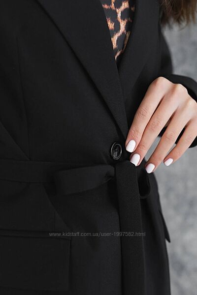 Подробное описание: Жіночий піджак класичний з поясом жакет чорний білий