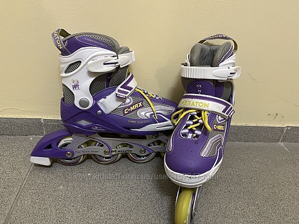 Продам ролики Maraton C-Max. Розмір вказано 35-38 (М), регулюються по довжині. Черевик: мʼякий, зі шкірозамінника з нубуком та сітчастим матеріалом. Високий підйом, твердий носок, нейлонова оболонка, ТРЕ манжета. Рама: алюміній (міцна та легка), покращена бічна підтримка ноги. Жорсткі поліуретанові колеса - тихі при катанні. Карбонові підшипники. Фіксація ноги: бакля, шнурівка, липучка та пʼятковий ремінь. Ролики в хорошому стані, все працює.