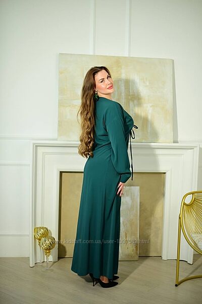 Подробное описание: Вечірня сукня максі в пол шовкова з довгим рукавом великих розмірів