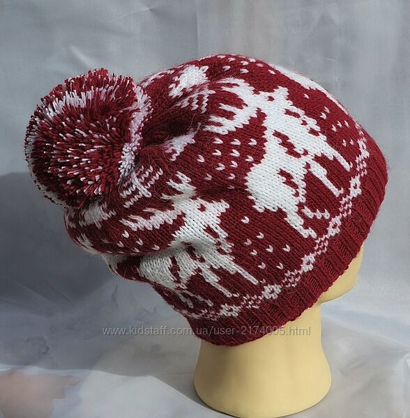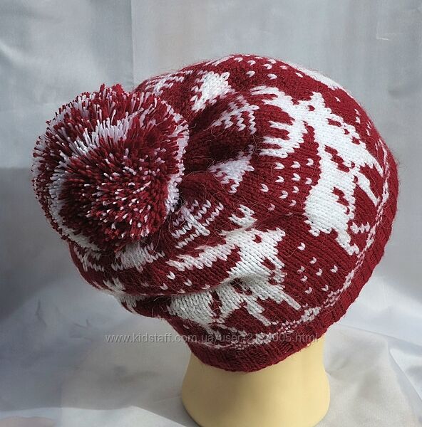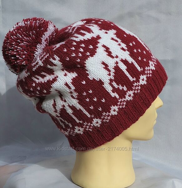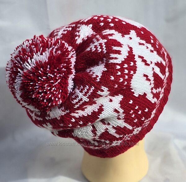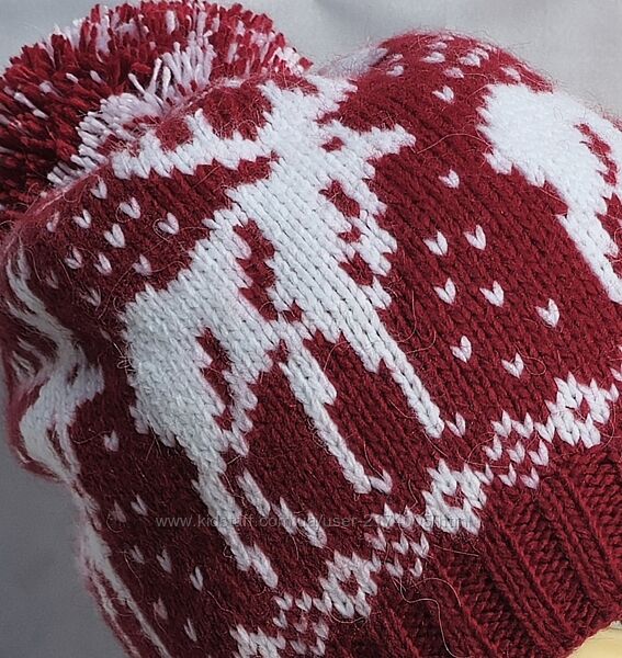Купить зимнюю вязаную красную Новогоднюю шапку как у Кевина из Один дома с норвежским орнаментом ОлениСостав пряжи - 20% меринос, 80% вспушенный акрил