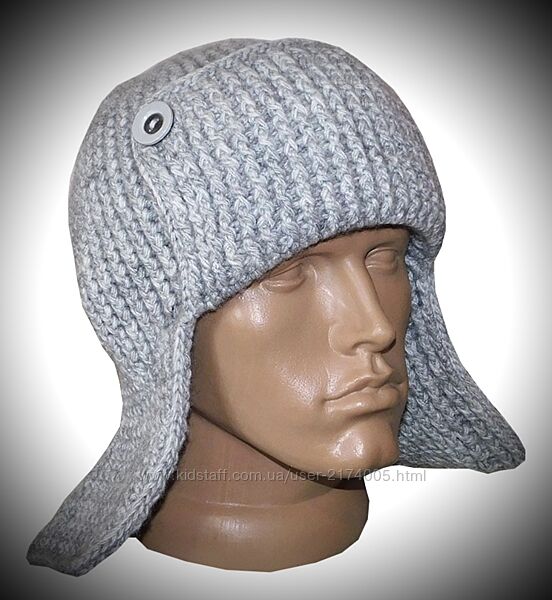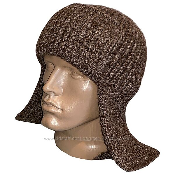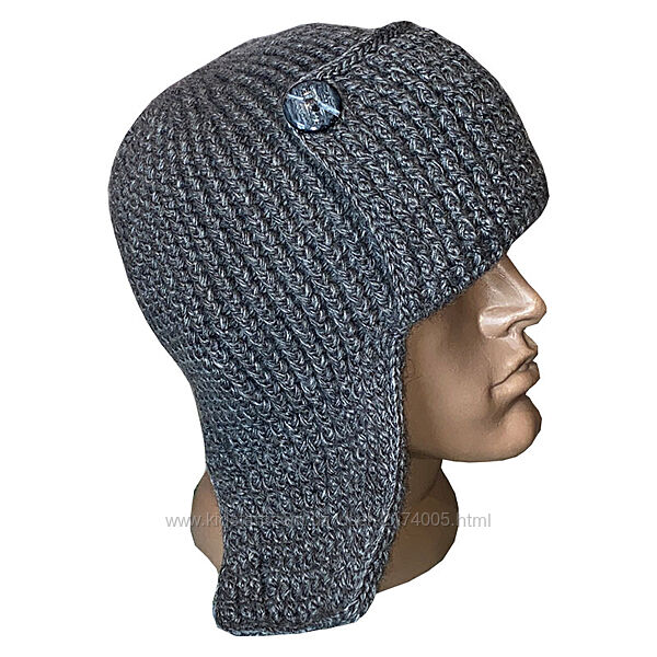 Подробное описание: Зимняя вязаная шапка ушанка ручной работы