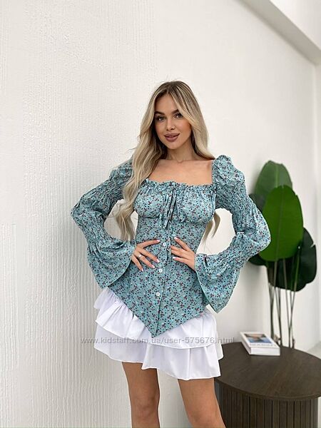 На спинці є прострочка з нитки-резинки, за рахунок чого сукня має ідеальну посадку.