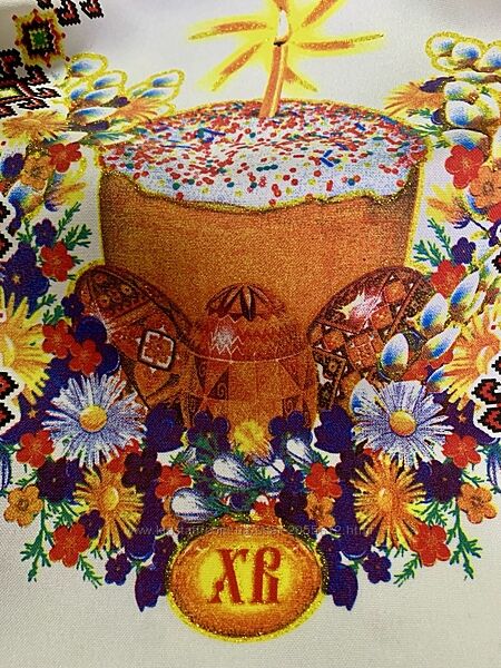Рушники з українським орнаментом та іншими тематичними малюнками надруковані на габардині. Друк виконаний з глітером (блискітки).Ширина 29 см