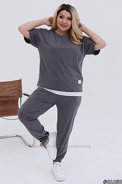 Супер стильный спортивный костюм двійка!Штани на манжеті + футболка з вставкою білою!