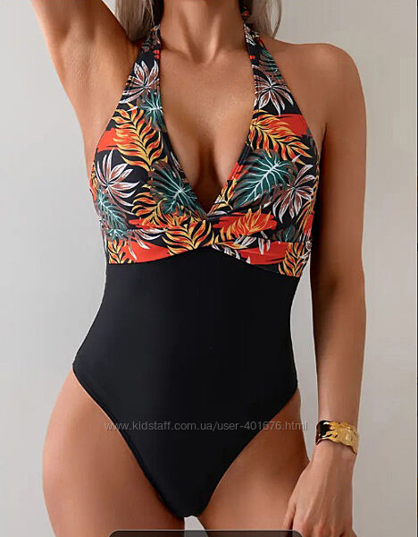 8936Цельный женский элегантный, комбинированный в цвете, завязывается на шее, спина открытая до талии, впереди драпировка на лифе, хорошо тянется.