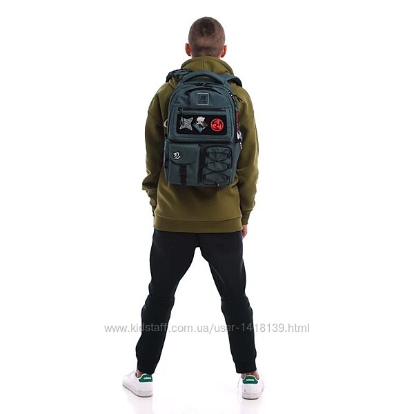Фішка цього рюкзака — кишеня з липучкою, яка дає можливість легко змінювати дизайн під настрій. Бейджі кріпляться на липучку, і це дозволяє швидко кастомізувати рюкзак у будь-якому стилі.