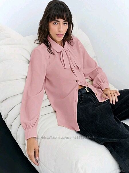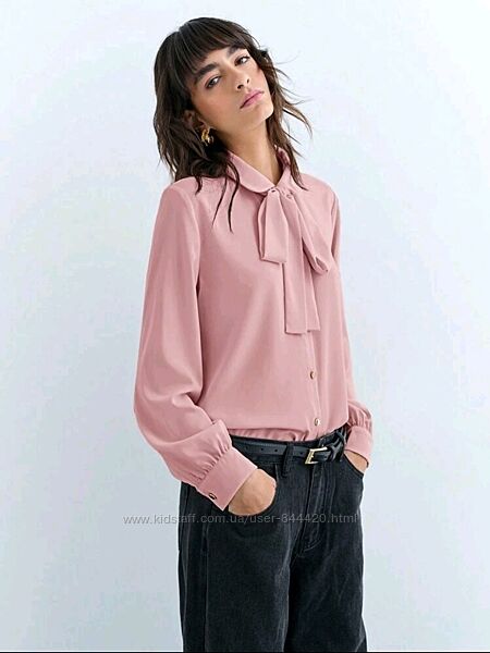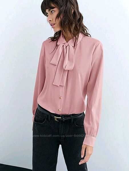 Дуже красива блуза з бантом рожева пудра