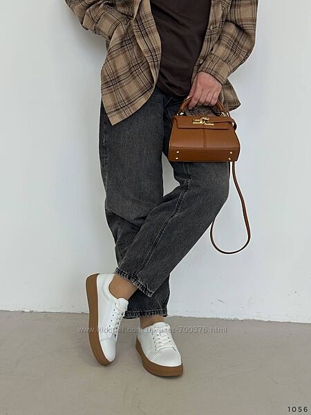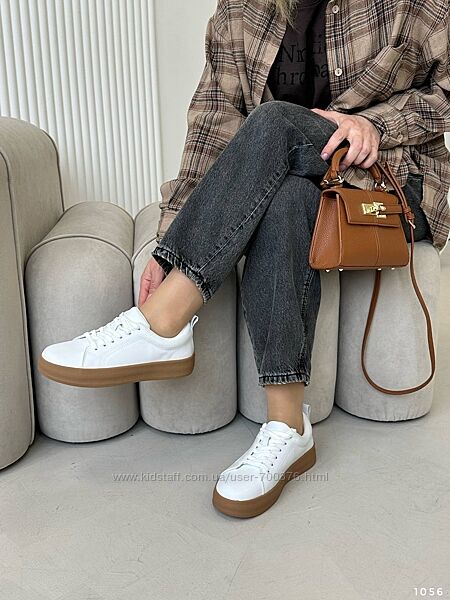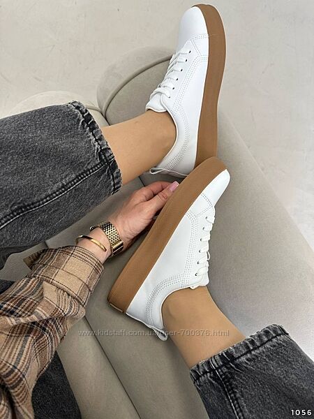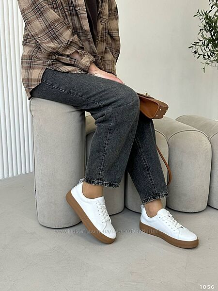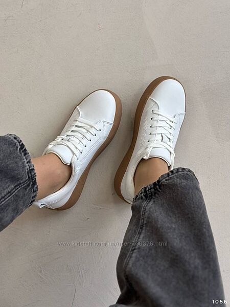 Кросівки, натуральна шкіра, білі, на коричневій підошві