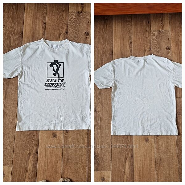 Продам футболки Zara, розмір 164 (13-14р) вживані, в гарному стані, без дефектів. Надам додаткові фото. Олх доставка плюс 25 грн до замовлення- фото 2 футболка молочного кольору довжина 59 см, ширина 49 см.- фото 3 футболка з Гарфілдлм довжина 58 см, ширина 45 см