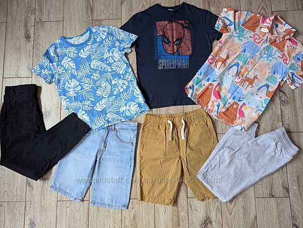 Фото 2 - рубашка Carters на 7р, синя футболка H&M на 6-8р, світлий костюм H&M на 7-8р, рубашка в листочки H&M на 7-8р, всі троє штанів H&M на 7-8р, голубі штани H&M на 7-8р, шорти H&M на 7-8р. Ціна 1200грн.