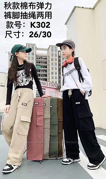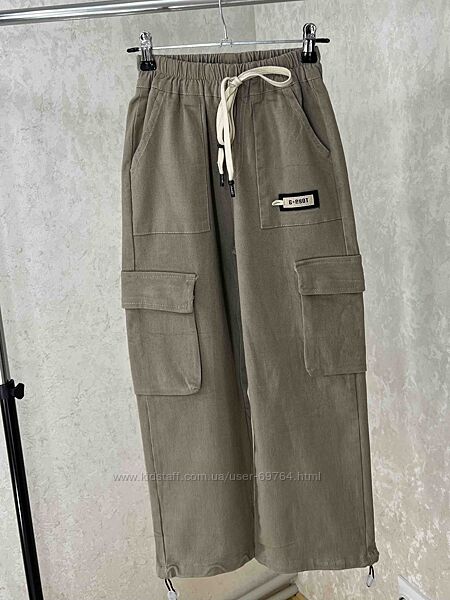 Стильные котоновые карго с карманами, р.122-152Снизу на калоше есть стяжка, можно носить джогерами