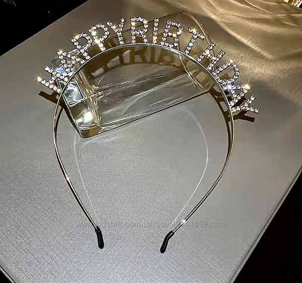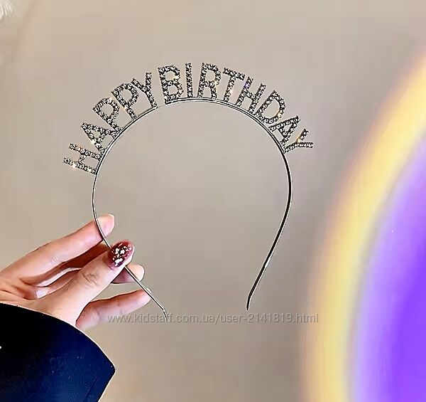 Праздничный обруч Happy Birthday со стразами в серебристом цвете. Хорошее качество.Материал: металл, стразы