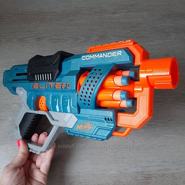 Бластер Nerf Elite 2.0 Commander E9485 - б/в, в ідеальному стані.Бластер Nerf Elite 2.0 Commander забезпечений 3 тактичними планками й пристроями для закріплення стовбура та приклада, які дають змогу підготувати зброю до будь-якої гри Nerf.