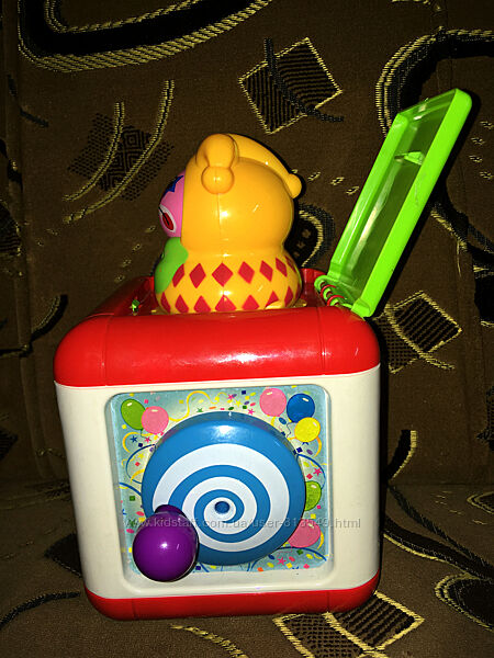Возраст от9 мес, 1 года. Мы игрались до 3 лет. Замечательный развивающий куб с занимательными играми на каждой стороне и забавным сюрпризом! Игрушка развлечет малыша и будет способствовать его обучению и развитию.Материал пластмасса.