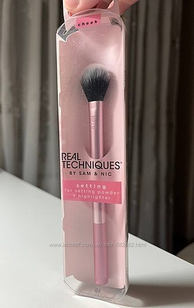 пензлик 400 пензель Real Techniques Setting Brush призначений для бездоганного нанесення хайлайтера і розставлення невагомих сяючих акцентів. для рідких в кремових продуктів.
