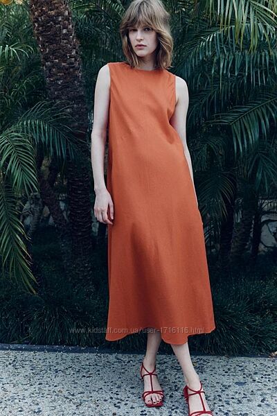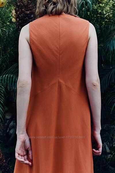 Обміна, повернення немаєПлатье миди выполнено из льняной пряжи. Круглый вырез, модель без рукавов и расклешенный подол. Потайная застежка-молния сзади