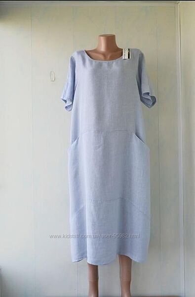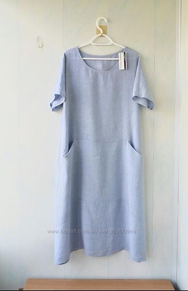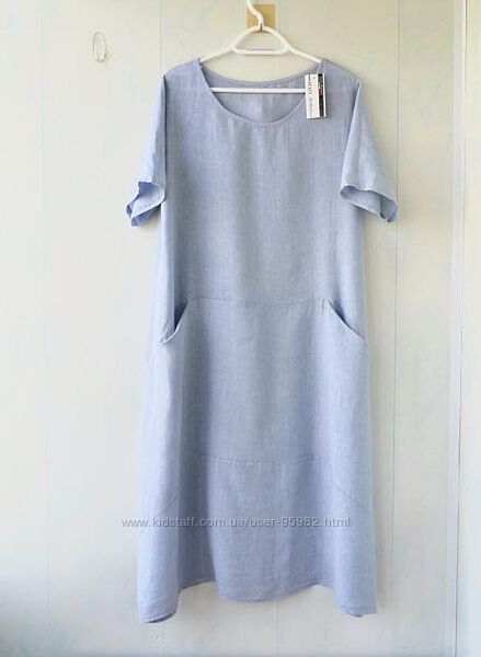Легка лляна дизайнерська сукня бохо Luca Vanucci зі 100% льону. Гарний колір, вільний крій, є дві кишені. Властивості льону описувати не буду,хто любить, і так усі прекрасно знають) На бирці розмір с, сяде і м, і