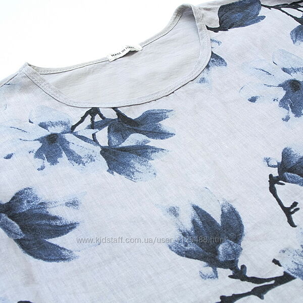 Очень интересная, свободного кроя, перед выполнен из натурального льна с эффектным цветочным принтом, спинка, окантовка горловины и рукавов из мягкого натурального, очень приятного к телу трикотажа. Легко сочетается с любым низом, идеально подходит для создания современных динамичных многослойных образов.
