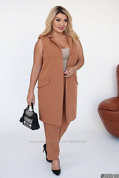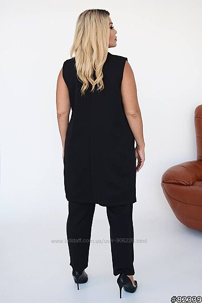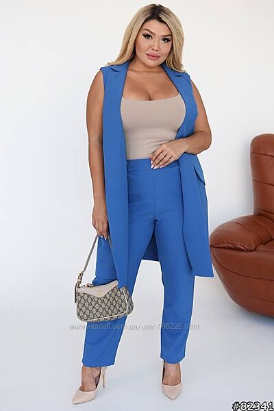 Жилет без підкладки,штани з комфортною високою посадкою,на талії резинка,є кишені у бокових швах