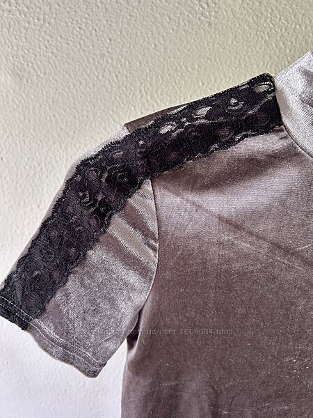 Бренд ZARAВелюрова блуза з кружевом на рукавах.