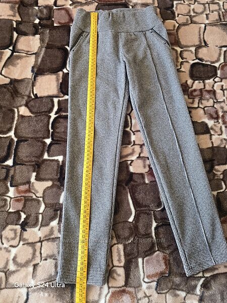 Тепленькі штани на осінь, спереду рубчик, дві кишеньки по боках і 2 позаду. Пояс - зручна широка резинка. Дуже гарні м´які штанішки. На зріст приблизно 122 см. Довжина штанів 71 см.Замовили в інтернеті, на жаль не підійшли. На худорляву дівчинку. Підійдуть на бедра до 60 см., на більш крупнішу дитину будуть малі.