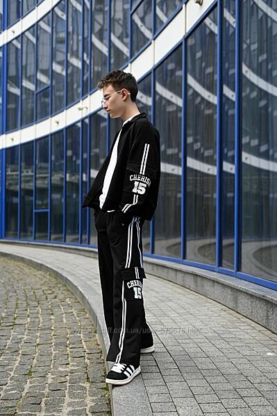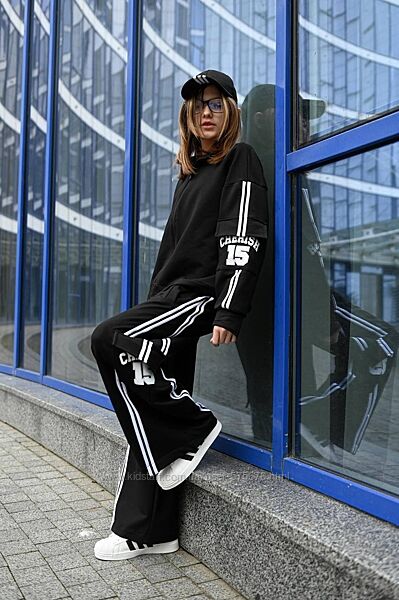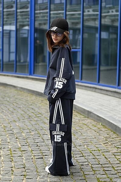 Штани зі стильнимм накладними карманами на штанах та рукавах . Пришивні трендові лампаси.