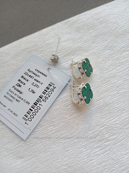 Подробное описание: Срібний набір комплект Ван Кліф Van Cleef зелений під малахіт
