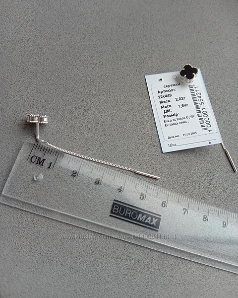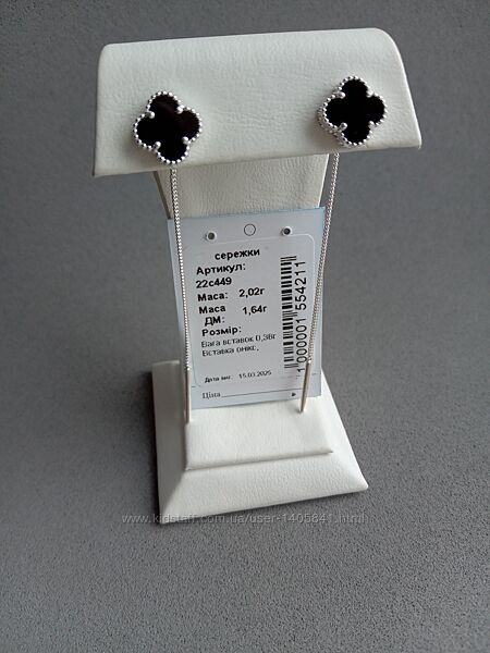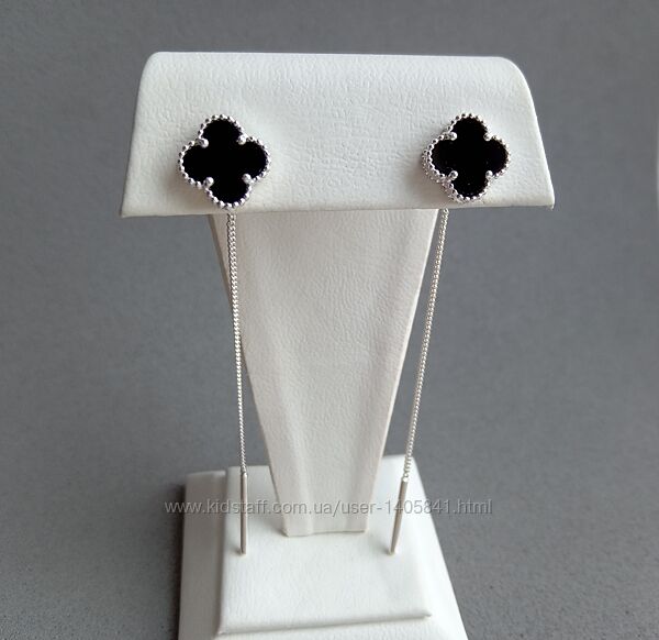 Подробное описание: Срібні сережки протяжки van cleef ван кліф онікс конюшина чорні