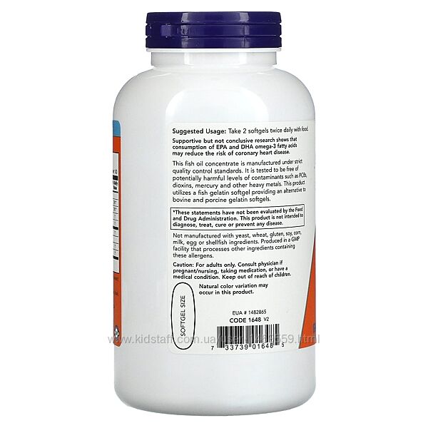 Подробное описание: NOW Foods омега-3 1000 мг 200 капсул рибячого желатину 1000 мг рибій жир