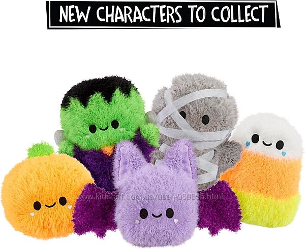 Зустрічайте Fluffie Stuffiez™ на Хелловін! Цю групу персонажів дуже легко обіймати, неймовірно пухнасті та неймовірні особистості. У Fluffie Stuffiez можна грати трьома способами: потягніть, розкрийте та запхайте! Потягніть пух, щоб побачити моторошний сюрприз під ним. Якого персонажа ви розкриєте? М’яка м’яка сумка одночасно служить місцем для зберігання вашого пуху і стає другим другом для тривалої гри. Ви закохаєтесь у різноманітні родини та персонажів, а також у їхні унікальні рідкісні риси та особистості. Збери їх усіх!