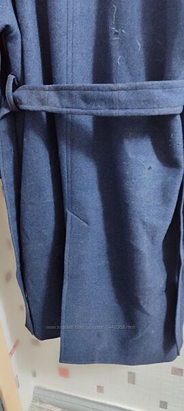 Женское демисезонное пальто. Цвет сине - серый. Ткань шерстяная, плотная. Внутри на подкладке. Сшито на заказ. Размер 52 - 54. Замеры скину по запросу.Пальто свободного покроя, на пояске. Имеет два кармана на листочке. Отложной воротник. Застёжка пуговицы. С дефектов есть небольшая потёртость (не дырка). На фото указано. В остальном полностью целое, без каких либо других дефектов. Цена чисто символическая 100 грн. Возможна отправка в другой город УкрПочтой или Новой почтой.